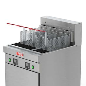 - Controlador digital; - Acendimento Automático; - Termostato de segurança; - Gabinete em aço inox; - Tanque e difusores em aço inox 304; - Cestos com cabo isolado; - Sistema de cozimento: óleo.