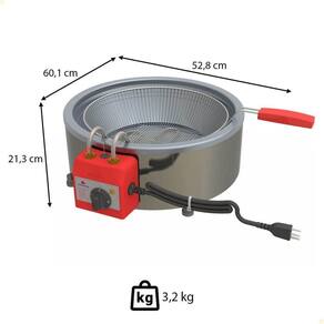 - Essa Fritadeira é fabricada com estrutura em aço inox, contando com resistência em aço inox de 3500 W e termostato automático para controle de temperatura.