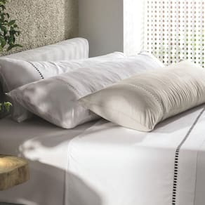 Disponível nas opções de bordado branco, preto ou cinza, combina com o jogo de cama da mesma linha ou pode ser usada como destaque em composições neutras e elegantes.