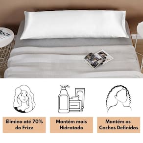 O cetim, não absorve a oleosidade natural dos fios e ainda ajuda a manter a definição dos cabelos, pois sua superfície deslizante reduz o atrito e deixa os cabelos no lugar. Portanto a mesma coisa com a pele, não deixa marcas no rosto e evita as indesejadas rugas. A fronha de cetim foi desenvolvida com tecido de toque sedoso e macio, para manter seu conforto durante o sono.
