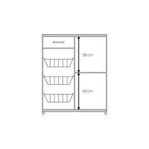 Fruteira 1 Porta Com 3 Cestos 1332 Ilan *Imagens meramente ilustrativas. Balcão com uma gaveta, 3 cestas de frutas e uma porta, divida com uma prateleiras.Conta com rodízios para fácil movimentação. Comporta galão de água ou forno micro-ondas. - 3 Cestas para frutas ou legumes; - 1 Porta dividida em duas partes; - 2 Puxadores cromados; - 1 Gaveta entregue já montada. - Corrediça telescópica Dimensões do produto montado: altura 87 cm largura 74 cm profundidade 35 cm. Produto entregue desmontado. Manual de montagem disponível no site do fabricante. Atenção: Não nos responsabilizamos, no ato da entrega, por desmontagens, subir escadas/elevadores ou transporte por guincho para apartamentos. Eventuais despesas são de responsabilidade do cliente. Confira as dimensões deste produto e certifique-se de que o mesmo passará normalmente por supostos elevadores, portas, escadas e/ou corredores de sua moradia.