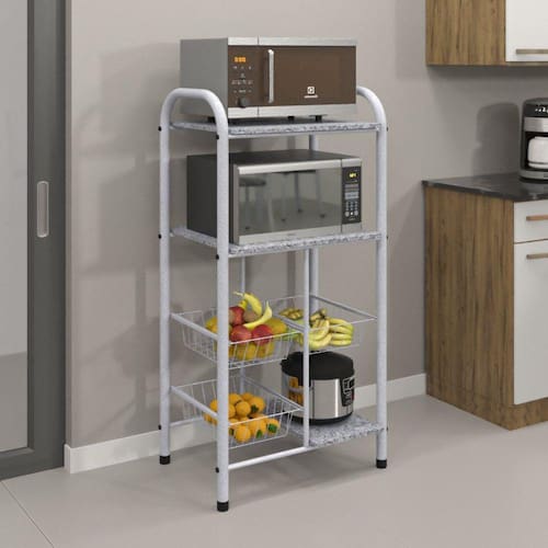 A fruteira Lavinea Plus chegou para completar sua cozinha, fruteira e Base Para Microondas foi feita para você que procura utilidade e beleza com ótimo espaço e acabamento em um único produto. Conta com pintura eletrostática a pó martelado, contém sapatas plásticas nos pés para evitar arranhões no piso e seu tampo é em pedra de granito. Prática irá manter sua cozinha organizada e suas frutas e legumes bem guardados, ela vai proporcionar para o seu ambiente, um visual moderno e sofisticado, deixando o local muito mais agradável e convidativo, além de economizar seu tempo na organização. Aproveite!! Acabamento: Pintura Acabamento da Prateleira: Verniz Ambiente Principal: Cozinha Cesto para Frutas: 03 Cesto Removível: Sim Complexidade da Montagem: Baixa: pode ser montado por uma pessoa sozinha Cor: Martelado Pérola/Granito Ocre Cor do Produto: Martelado Pérola/Granito Ocre Escala de Brilho: Semi-Brilho Escala de Brilho da Prateleira: Semi-Brilho Itens Inclusos: 1 Fruteira, Kit Ferragens e Manual de Montagem Manual de Montagem e Instalação: https://product-hub-prd.madeiramadeira.com.br/819777/documents/7b5de87f-0413-4dbd-868b-dfb2683f34cbmfruteiralavineaplusrev001.pdf Material da Prateleira: Granito Material do Cesto: Aço Material dos Pés: Aço Necessita Montagem: Sim Origem do Produto: Nacional Pés Reguláveis: Não Peso: 35.4 Peso Máximo por Prateleira: 8 Possui Pés: 04 Possui Portas: Não Recomendações de Uso, Manutenção e Limpeza: Limpar com flanela ou pano Pano levemente umedecido e pano seco. Não utilizar produtos abrasivos. Não expor o produto diretamente à luz solar e à umidade. Sapatas Niveladoras: Não Sistema de Montagem: Parafusos, Tampa Parafusos e Sapatas Plásticas Suporta Até (kg): 30 Ean: 7909903216699