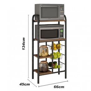 Para deixar um ambiente com a sua cara é sempre bom decorá-lo com o que você gosta e com a Fruteira Islândia sua cozinha ficará mais bonita e organizada. Você poderá usá-la para de forma funcional e decorativa, coloque as frutas, legumes e use como suporte de micro-ondas, ou então, decore com um lindo artesanato. Sua estrutura em aço carbono, pintura epóxi, com quatro prateleiras em MDF-BP, super-resistentes, sendo duas (58,5x29,5)cm e duas (45x29,5)cm. Acabamento: BP Acabamento da Prateleira: BP Ambiente Principal: Cozinha Cesto para Frutas: 03 Cesto Removível: Sim Complexidade da Montagem: Baixa: pode ser montado por uma pessoa sozinha Cor: Martelado/Imbuia Cor do Produto: Martelado/Imbuia Cor Predominante: Preto Escala de Brilho: Brilhante Escala de Brilho da Prateleira: Brilhante Itens Inclusos: 1 Fruteira, Kit Ferragens e Manual de Montagem Linha ou Coleção: Istândia Manual de Montagem e Instalação: https://cdn2.madeiramadeira.com.br/atributo/moveis-teixeira/786987-isl-ndia.pdf Material da Prateleira: MDF Material do Cesto: Aço Material dos Pés: Aço Necessita Montagem: Sim Origem do Produto: Nacional Peso: 15,6 kg Peso Máximo por Prateleira: 20 kg Possui Pés: 04 Possui Portas: Não Recomendações de Uso, Manutenção e Limpeza: Limpeza com pano macio e basicamente seco, não utilizar material aspero. Não ultilizar solventes a base de inflamáveis. Sapatas Niveladoras: Não Sistema de Montagem: Ventosa Suporta Até (kg): 40 kg Tamanho: