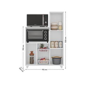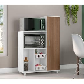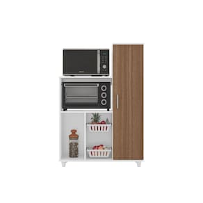 Fruteira Anne 1 porta e 2 cestos de Suporte para frutas em PVC, Rodízios e Espaço para bebedouro e microondas