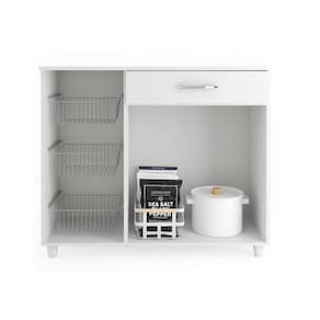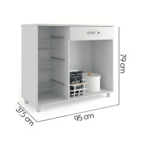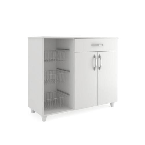 Linha: Amanda Modelo:Fruteira Amanda Cor: Branco Material: MDP Pintura / Revestimento: UV Tipo de Porta: Bater Portas: 2 Gavetas: 1 Cestos: 3 aramados Corrediças e dobradiças: Metálicas Puxadores: 3 em ABS Necessita Montagem: sim