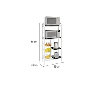 A armação da fruteira é construída em tubular na cor branca, com medidas de altura de 140cm, largura de 65cm e profundidade de 38cm. Essa armação fornece estabilidade e suporte para os tampos em ardósia, criando um conjunto durável e resistente.