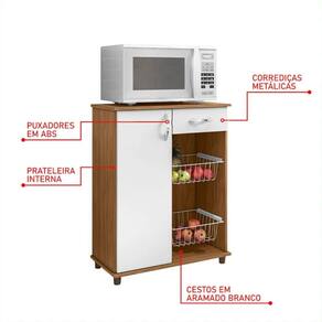 A fruteira Belize New é uma ótima opção para quem busca organizar e otimizar os espaços da sua cozinha. Com gavetas e prateleira fechada com porta, este móvel possui amplos espaços para guardar qualquer item. A fruteira conta também com 02 cestos brancos em aramado oxidado para armazenar frutas e verduras e um espaço para instalação de forno ou micro-ondas. Além de todas essas vantagens, o móvel ainda possui acabamento impresso, alta cobertura e uma ótima aderência, tudo para aumentar sua durabilidade e deixá-lo ainda mais resistente.