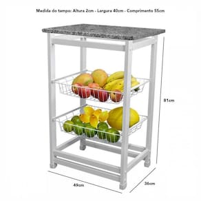 A Fruteira da Utilaço oferece praticidade e qualidade. Com tampo de granito e dois cestos perfeitos para armazenar frutas e legumes, e ainda conta com espaço livre em cima que de diversas formas, seu tamanho suporta forno micro-ondas ou bebedouro.