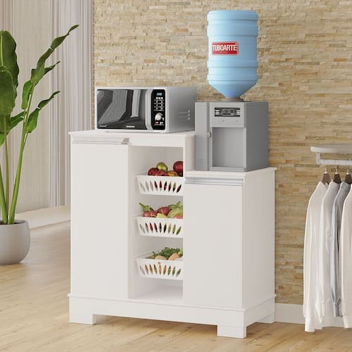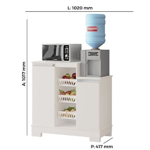 A fruteira Cecília conta com duas portas e suporte para microondas e gelágua é um móvel prático e funcional para cozinhas modernas e compactas. Sua estrutura é produzida em MDF, um material de alta qualidade que garante maior durabilidade e resistência ao móvel.