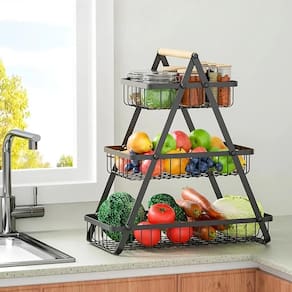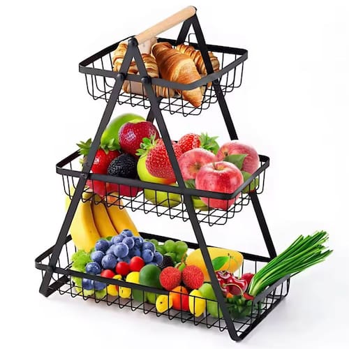 Fruteira Cesto Triplo Aramado Fruta Legumes Cozinha Organizaçao Mesa Bancada Escritorio Estante Moderno Multiuso