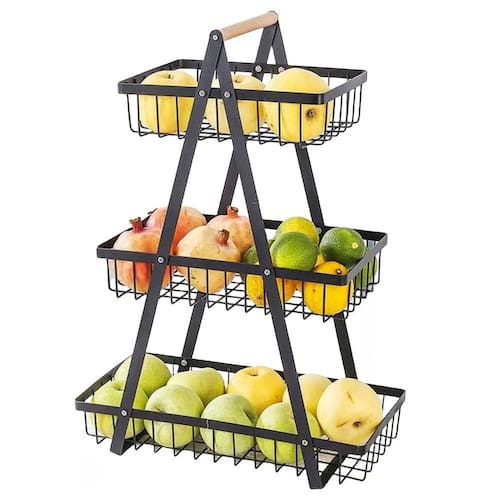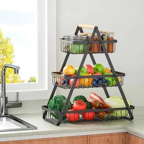 Fruteira Cesto Triplo Aramado Fruta Legumes Cozinha Organizaçao Mesa Bancada Prateleira Multiuso Escritorio Armario Moderno