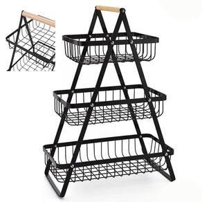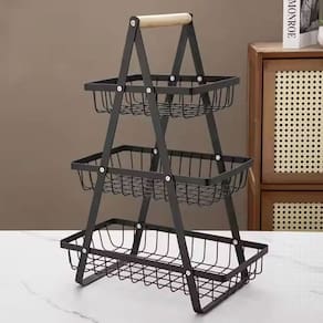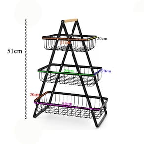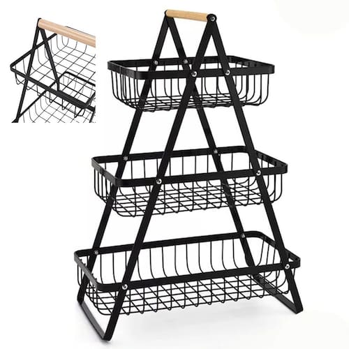 Fruteira Cesto Triplo Aramado Fruta Legumes Organizaçao Cozinha Mesa Bancada Multiuso Escritorio Armario Moderno Estante - Preto