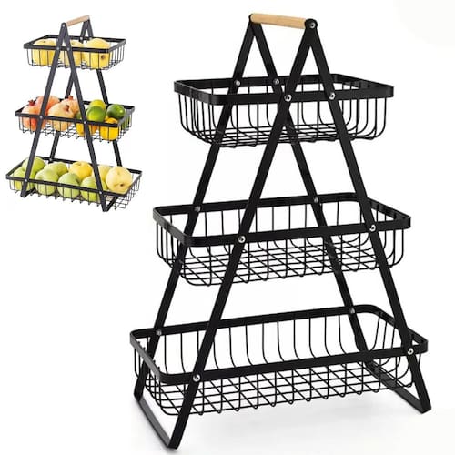 Fruteira Cesto Triplo Fruta Legumes Bancada Mesa Cozinha Organizaçao Multiuso Armario Escritorio Estante Moderno Aramado