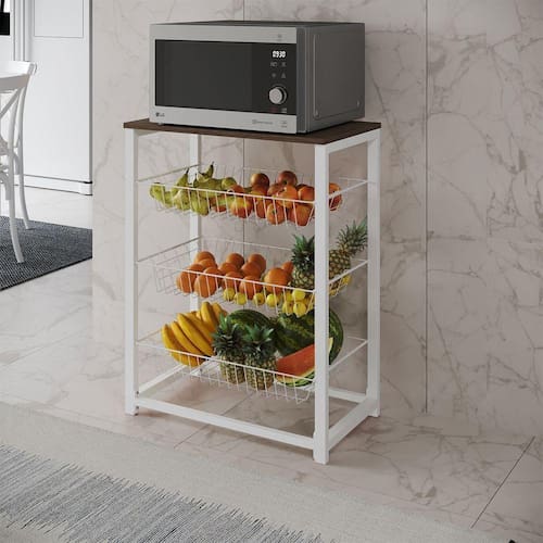 Fruteira Com Suporte Para Micro-Ondas Barcelona Aço Branco Cesto Branco Tampo AmêndoaA Fruteira Suporte de Micro-ondas Barcelona possui 3 cestos estilo gaveta, para o armazenamento de frutas e legumes e ainda possui tampo de MDF na parte superior, livre para colocar objetos de decoração, utensílios e ela é ideal para colocar seu micro-ondas. A Fruteira fica linda em qualquer tipo de cozinha. Facilitando na organização e na praticidade do dia a dia.Tipo: Fruteira Suporte para Micro-ondasModelo: BarcelonaCor Base: BrancoCor Cesto: BrancoCor Tampo: Amêndoa Quantidade de Volumes: 3A Fruteira vai desmontada e acompanha manual para montagem.Medidas:Altura: 83,5cmLargura: 63cmComprimento: 35cmATENÇÃOIMAGENS MERAMENTE ILUSTRATIVAS REALIZADO EDIÇÃO, PODENDO HAVER UMA PEQUENA VARIAÇÃO DE COR DEPENDENDO DE CADA TELA OU MONITOR.Fruteira com Suporte para Micro-ondas Barcelona AÃo Branco Cesto Branco Tampo AmÃndoa