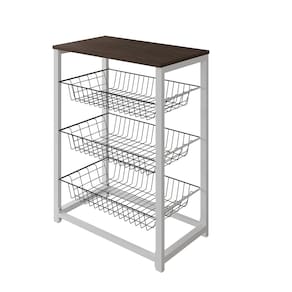 Fruteira Com Suporte Para Micro-Ondas Barcelona Aço Branco Cesto Preto Tampo Amêndoa A Fruteira Suporte de Micro-ondas Barcelona possui 3 cestos estilo gaveta, para o armazenamento de frutas e legumes e ainda possui tampo de MDF na parte superior, livre para colocar objetos de decoração, utensílios e ela é ideal para colocar seu micro-ondas. A Fruteira fica linda em qualquer tipo de cozinha. Facilitando na organização e na praticidade do dia a dia.
