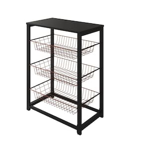 Fruteira Com Suporte Para Micro-Ondas Barcelona Aço Preto Cesto Cobre Tampo Preto A Fruteira Suporte de Micro-ondas Barcelona possui 3 cestos estilo gaveta, para o armazenamento de frutas e legumes e ainda possui tampo de MDF na parte superior, livre para colocar objetos de decoração, utensílios e ela é ideal para colocar seu micro-ondas. A Fruteira fica linda em qualquer tipo de cozinha. Facilitando na organização e na praticidade do dia a dia.