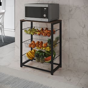 Fruteira Com Suporte Para Micro-Ondas Barcelona Aço Preto Cesto Preto Tampo Amêndoa A Fruteira Suporte de Micro-ondas Barcelona possui 3 cestos estilo gaveta, para o armazenamento de frutas e legumes e ainda possui tampo de MDF na parte superior, livre para colocar objetos de decoração, utensílios e ela é ideal para colocar seu micro-ondas. A Fruteira fica linda em qualquer tipo de cozinha. Facilitando na organização e na praticidade do dia a dia.