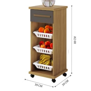 Fruteira Curitiba Branca Arte Móveis 1 Gaveta 3 Cestos Cinamomo/grafite