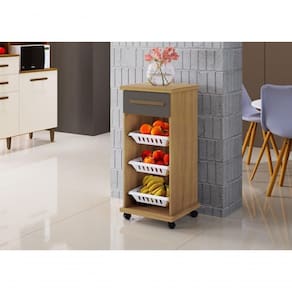 Prático resistente e funcional balcão fruteira para cozinha e áreas. Com tampo super resistente, ideal para colocar galão de água, garrafa de café ou o que mais sua imaginação mandar, as fruteira são de plástico, muito mais higiênicas do que as fruteiras em aramado. Excelente produto com tampo em mdf 18mm com bordas arredondadas e pintadas, mais resistente e evita a infiltração de água o restante do corpo em mdp 15mm, tem uma gaveta com corrediça metálica e puxador cromado ergonômico, as fruteiras de plástico além de higiênica possui desenho projetado para não ferir as frutas e legumes. Com design arrojado e moderno vai muito bem em diferentes ambientes, é muita funcionalidade em um único produto.