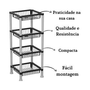- cestos empilháveis até 4 andares e desmontáveis; - forma fácil e rápida de organizar suas coisas em qualquer cômodo da casa, principalmente na cozinha; - altura máxima de 78,5 cm com os 4 andares; - material de qualidade, ao desmontar, vira uma peça compacta; -fácil higienização; -suporta até 3 kg por cesto; -produto resistente, fácil montagem e prático para o dia a dia. Especificações e ficha técnica - material: plástico - cor: preto/cinza e branca - quadrada -medidas: 78,5x31x31cm itens inclusos - 01 cesto organizador empilhável 4 andares quadrado