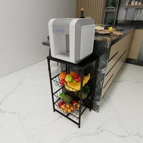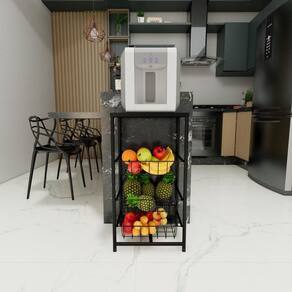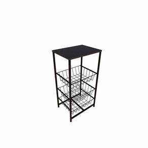 Fruteira de chão cozinha aço mdf 3 cestos multiuso Cor: preto