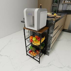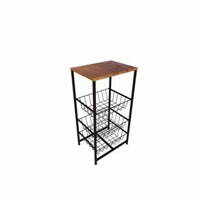 Fruteira de chão cozinha aço mdf 3 cestos removível multiuso Cor: amadeirado Produto vai desmontado, necessita realizar a montagem O produto já é enviado com o kit para instalação.