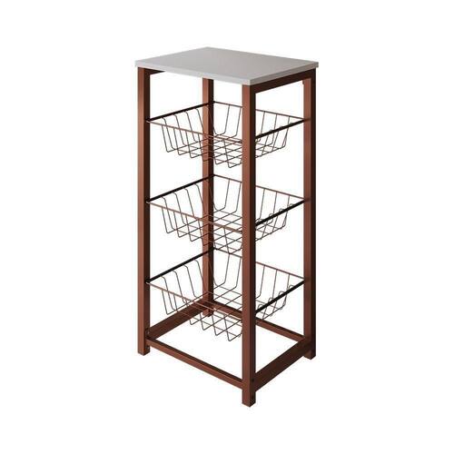 Fruteira De Chão Cozinha Desmontada Aço Cobre Tampo Branco MadriOrganize suas frutas preferidas na fruteira Madri. Ela é ideal para fazer parte da sua cozinha, contando com um design atraente que é capaz de transformar seu lar. A Fruteira que se encaixará perfeitamente na sua cozinha. Fruteira Nevada, além de ser uma peça compacta e moderna que organiza sua cozinha, é perfeita para você que busca organização sem perder seu estilo e sua essência.Informação do ProdutoTipo: FruteiraModelo: MadriCor Base: CobreTampo: BrancoCor cesto: Cobre Quantidade de Cestos: 3CaracterísticasAltura: 83,5cmLargura: 40,5cmProfundidade: 29,5cmATENÇAOImagem meramente ilustrativa, foram realizadas manipulação para demonstração do produto, podendo haver diferença de tonalidades dependendo do seu monitor ou luminosidade.Fruteira de ChÃo Cozinha Desmontada AÃo Cobre Tampo Branco Madri