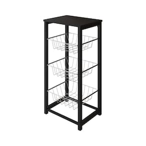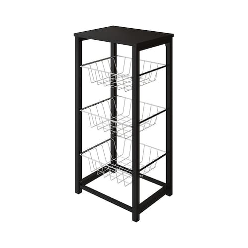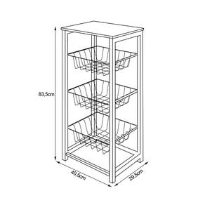 Fruteira de Chão Cozinha Desmontada Aço Preto Cesto Branco Tampo Preto Madri