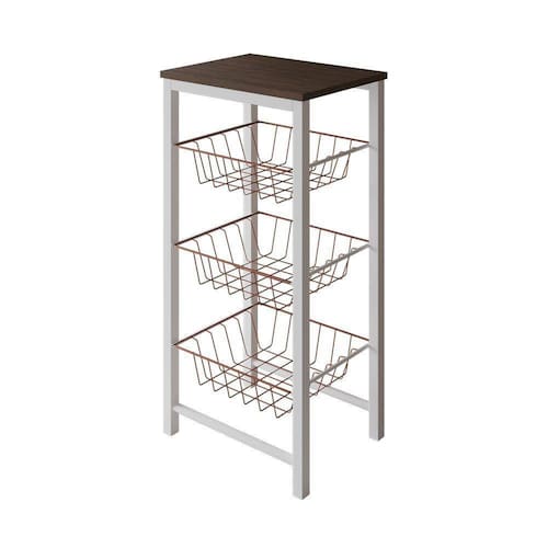 Fruteira De Chão Cozinha Montada Aço Branco Cesto Cobre Tampo Amêndoa Roma Cor: Branco