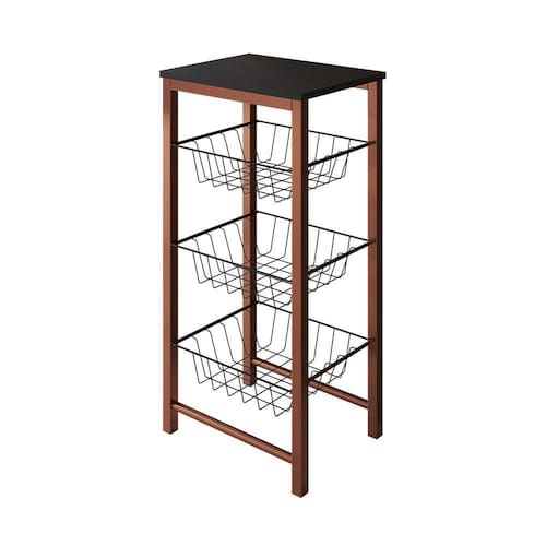 Fruteira De Chão Cozinha Montada Aço Cobre Cesto Preto Tampo Preto Roma Cor: Preto