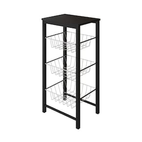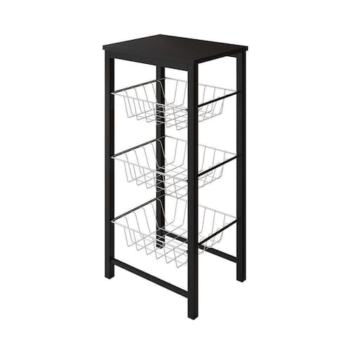 Fruteira De Chão Cozinha Montada Aço Preto Cesto Branco Tampo Preto Roma Cor: Preto