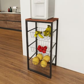Fruteira de chão em aço cozinha suporte bebedouro amadeirado