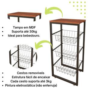 Fruteira de chão em aço cozinha suporte bebedouro mdf preto Produto vai desmontado, necessita realizar a montagem O produto já é enviado com o kit para instalação.