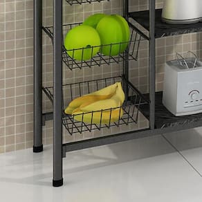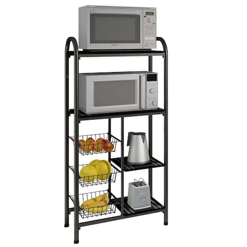 Fruteira De Chão Multi Belgica Bm Tubulares Prata Martelado A Fruteira Bélgica da BM possui dois nichos para forno e cestos aramados para deixar a sua cozinha muito mais organizada. Suas duas prateleiras superiores permitem que você coloque dois eletros ou decorações. As 3 cestas aramadas são reforçadas e possibilitam que guarde frutas e legumes com facilidade e para fácil acesso. As prateleiras são em ardósia, que além de agregar qualidade, dão ao móvel todo charme que o seu ambiente merece. A fruteira para micro-ondas e forno é fabricada com tubos laterais em aço de alta qualidade, garantindo robustez e o máximo de resistência à estrutura da peça. Sua cozinha merece um móvel que a deixe ainda mais bonita e arrumada. NA
