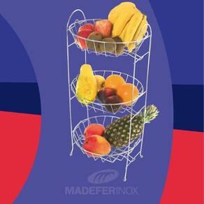Fruteira de chão organizadora 3 andares aço cromado Fruteira tripla cromada em metal Organiza e deixa a cozinha mais pratica Fruteira de chão redonda 68 cm altura 3 cestos. Dimensões: 68 cm de altura x 30 cm de diâmetro. Material : aço cromado Ela é para ser colocada no piso ( chão ) Possui 3 cestos arredondados tendo 7 cm de altura entre sua base e sua borda. A distância entre os cestos é de 22 cm. Indústria brasileira madefer