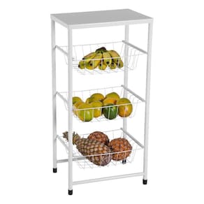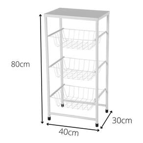 Fruteira De Chão Para Cozinha 3 Andares Cesto Branca PlusFruteiras de chão unem praticidade e design em uma casa bem decorada, são ideais para compor ambientes como cozinha, áreas de lazer ou varanda. Produzida em aço com acabamento anti-ferrugem e pintura eletrostática epóxi, que garante muito mais durabilidade, seus pés possuem bordas emborrachadas evitando que deslize ou risque o piso de sua casa. ESPECIFICAÇÕES TÉCNICASAmbientes indicados: Cozinhas, Áreas de lazer e Varanda.Formato: RetangularAcabamento: Pintura Eletrostática EpóxiCor: BrancoMaterial Estrutura: Tubo de Aço com proteção anti-ferrugemRequer Montagem: NãoPeso Suportado: 30KgConteúdo da Embalagem: 1 Fruteira e 3 CestosQuantidade de Cestos: 3Cestos Removíveis: SimRecomendações de Uso, Manutenção e Limpeza: Utilizar um pano seco ou levemente umedecido DIMENSÕES GERAISAltura: 80cmLargura: 40cmProfundidade: 30cm