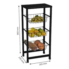Fruteira De Chão Para Cozinha 3 Cestos Preto Fosco Multiuso Fruteira multiuso com cestos deslizantes produzida em aço, podendo ser utilizada em vários ambientes na cozinha, banheiro, quarto, facilitando seu dia-a-dia. Seu tampo superfície superior de aço permite sua utilização para diversas outras possibilidades, como a utilização de arranjos ou até mesmo utensílios domésticos, como BEBEDOURO , suportando até 30 kg, o que lhe propicia um excelente custo-benefício. Dimensões: Altura - 86cmLargura - 40cmProfundidade - 30cm Beneficios. Cestos Deslizante, facilitando o uso doméstico.Fabricado em metalon 30x20 todo soldado, grantindo maior sustentabilidade para seu produtos .Batoques emborrachados no pé, protegendo seu revestimento .Pintura eletróstatica Epóxi, maior durabilidade. Conteúdo da Embalagem. 1- Fruteira 3 cesto Preto FoscoGarantia de fábrica. 3 meses contra defeito de fabricacão. Marca: Belolar