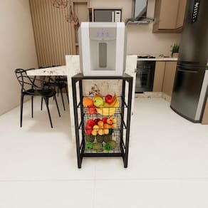 Fruteira de chão em aço cozinha suporte bebedouro Aço preto Produto vai desmontado, necessita realizar a montagem O produto já é enviado com o kit para instalação.
