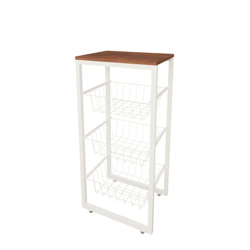 Fruteira De Chão Para Cozinha Branco Brilho Aço Amadeirado Fruteira multiuso com cestos deslizantes produzida em aço, podendo ser utilizada em vários ambientes na cozinha, banheiro, quarto, facilitando seu dia-a-dia.