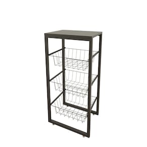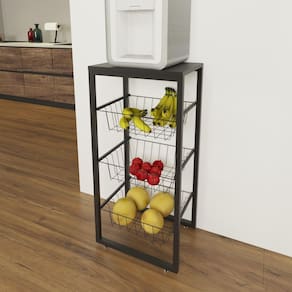 Fruteira De Chão Preto Fosco Em Aço Preto Fruteira multiuso com cestos deslizantes produzida em aço, podendo ser utilizada em vários ambientes na cozinha, banheiro, quarto, facilitando seu dia-a-dia.