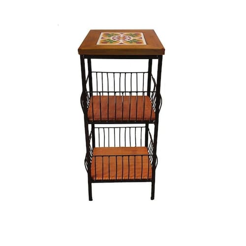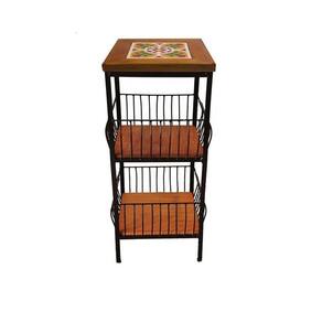 Fruteira de chão com dois andares, construída por artesãos premiados, usando madeira de demolição tratada e ferro com pintura eletrostática antiferrugem.