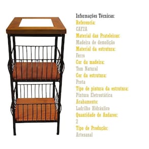 Além de linda e versátil, esta peça surpreende pela sua qualidade de montagem e acabamento, feita por artesões renomados, usando madeira de demolição de alta qualidade e com tratamentos que garantem resistência e durabilidade acima do normal. Sua estrutura totalmente feita em ferro, com soldas feita a mão, seu acabamento está em outro patamar. E, para complementar, toda a estrutura recebe pintura eletrostática, que é antiferrugem e dificilmente irá arranhar. Com tudo isso é fácil de imaginar que esta peça irá durar muitos anos sem perder seu charme .