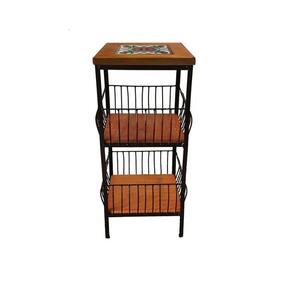 Fruteira De Ferro E Madeira 2 Andares Com Ladrilho Hidráulico Artesanal Ladrilho B3 - Marrom