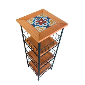 Fruteira De Ferro E Madeira Grande 3 Andares Com Ladrilho Hidráulico Artesanal Ladrilho A1 - Marrom