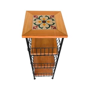 Fruteira de chão com três andares, construída por artesãos premiados, usando madeira maciça, ferro com pintura eletrostática antiferrugem e um ladrilho Hidráulico. Seu ótimo trabalho e materiais que garantem um excelente acabamento e a certeza de que irá durar muitos anos sem perder sua beleza .