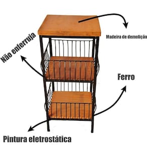 Fruteira de chão com dois andares, construída por artesãos premiados, usando madeira de demolição tratada e ferro com pintura eletrostática antiferrugem. Seu ótimo trabalho e materiais que garantem um excelente acabamento e a certeza de que irá durar muitos anos sem perder sua beleza natural.