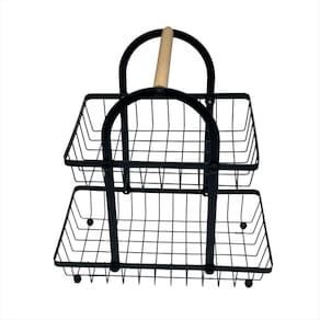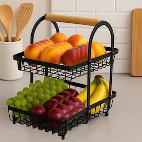 Fruteira de Metal: Organização com Estilo e Praticidade Dê um toque especial à sua cozinha com esta fruteira de metal de dois andares Com um design elegante e funcional, ela é perfeita para armazenar frutas, legumes e outros itens de forma prática e organizada. Benefícios que fazem a diferença: Material resistente - Estrutura de metal durável e estável. Dois andares espaçosos - Mais capacidade para otimizar seu espaço. Alça de madeira - Toque rústico e sofisticado para qualquer ambiente. Base com pés esféricos - Estabilidade e charme extra. Ideal para quem busca organização sem abrir mão do design moderno. Adicione mais praticidade e beleza à sua cozinha hoje mesmoEspecificações Técnicas:Cor: PretoMaterial: Metal e MadeiraMedidas Aproximadas: Altura: 30,5 cm x Largura: 17,5 cm x Comprimento: 30 cmImagens IlustrativasComposição da Embalagem:1 Fruteira Marca: Não Informado