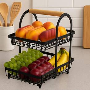 Fruteira de Metal: Organização com Estilo e Praticidade Dê um toque especial à sua cozinha com esta fruteira de metal de dois andares Com um design elegante e funcional, ela é perfeita para armazenar frutas, legumes e outros itens de forma prática e organizada. Benefícios que fazem a diferença: Material resistente - Estrutura de metal durável e estável. Dois andares espaçosos - Mais capacidade para otimizar seu espaço. Alça de madeira - Toque rústico e sofisticado para qualquer ambiente. Base com pés esféricos - Estabilidade e charme extra. Ideal para quem busca organização sem abrir mão do design moderno. Adicione mais praticidade e beleza à sua cozinha hoje mesmoEspecificações Técnicas:Cor: PretoMaterial: Metal e MadeiraMedidas Aproximadas: Altura: 30,5 cm x Largura: 17,5 cm x Comprimento: 30 cmImagens IlustrativasComposição da Embalagem:1 Fruteira Marca: Não Informado Ean: 7901010100311