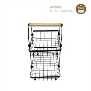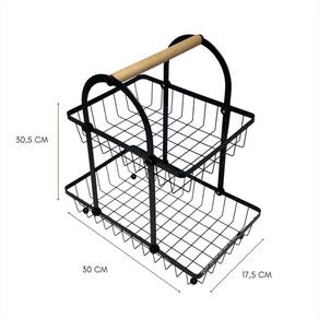 Fruteira de Metal: Organização com Estilo e Praticidade Dê um toque especial à sua cozinha com esta fruteira de metal de dois andares Com um design elegante e funcional, ela é perfeita para armazenar frutas, legumes e outros itens de forma prática e organizada. Benefícios que fazem a diferença: Material resistente - Estrutura de metal durável e estável. Dois andares espaçosos - Mais capacidade para otimizar seu espaço. Alça de madeira - Toque rústico e sofisticado para qualquer ambiente. Base com pés esféricos - Estabilidade e charme extra. Ideal para quem busca organização sem abrir mão do design moderno. Adicione mais praticidade e beleza à sua cozinha hoje mesmoEspecificações Técnicas:Cor: PretoMaterial: Metal e MadeiraMedidas Aproximadas: Altura: 30,5 cm x Largura: 17,5 cm x Comprimento: 30 cmImagens IlustrativasComposição da Embalagem:1 Fruteira Marca: Não Informado