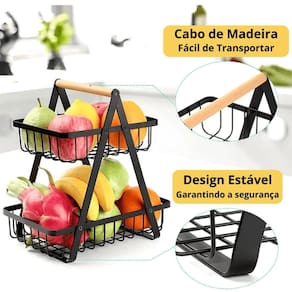 Fruteira De Mesa Dupla Cesto Aramado Organizador Frutas